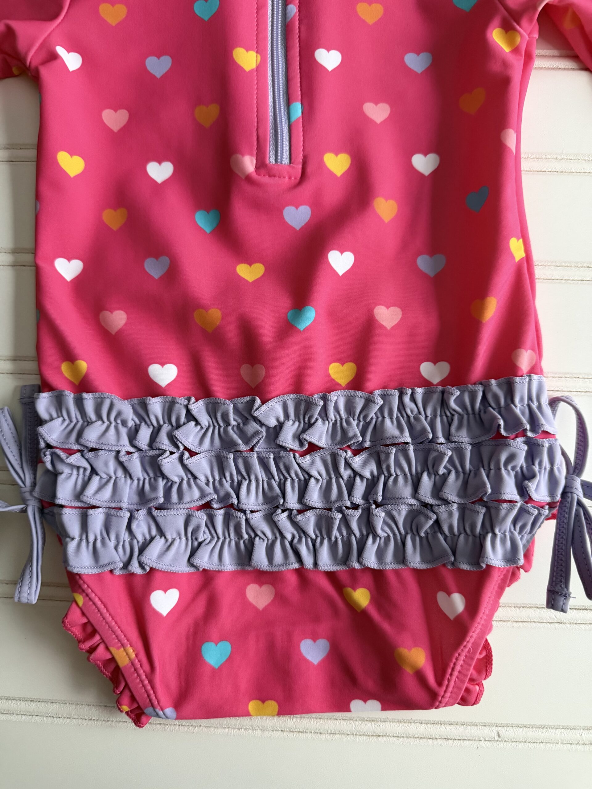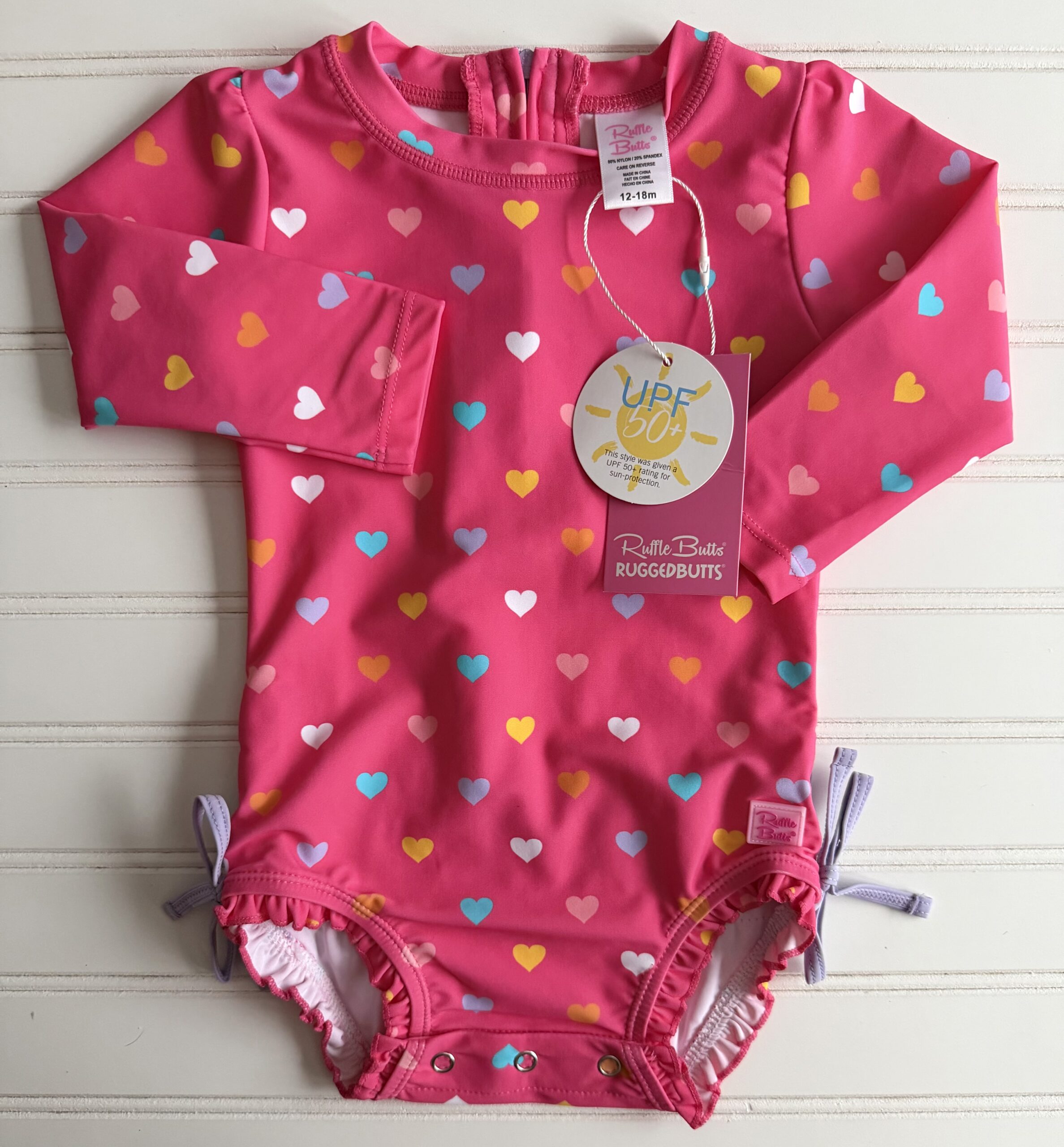 Ruffle Butts Heart-Print Rashguard Swimsuit